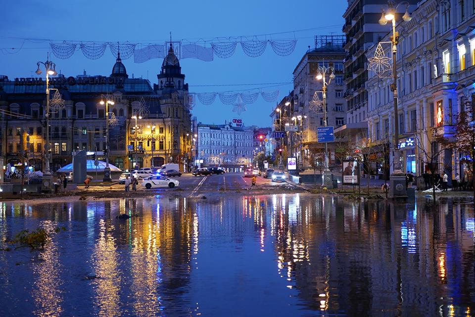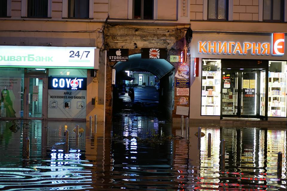 Ночью в центре Киева бушевала гроза. Улицы превратились в реки.