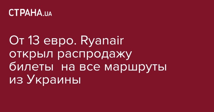 Как сообщала "Страна", ранее  Ryanair объявила распродажу билетов  из Киева и Львова за 10 евро.
