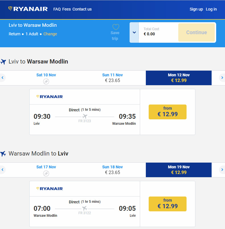 Скриншот: ryanair.com