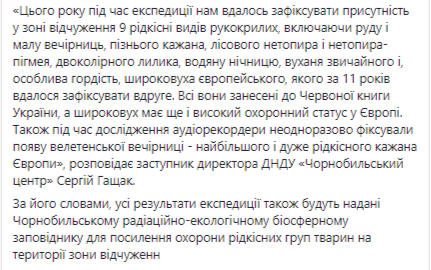 Согласно сообщению, уже завершилась полевая экспедиция в рамках ежегодного исследования рукокрылых. В этом году ученые исследовали левобережную часть зоны отчуждения, которая является наименее изученной по сравнению с другими регионами.