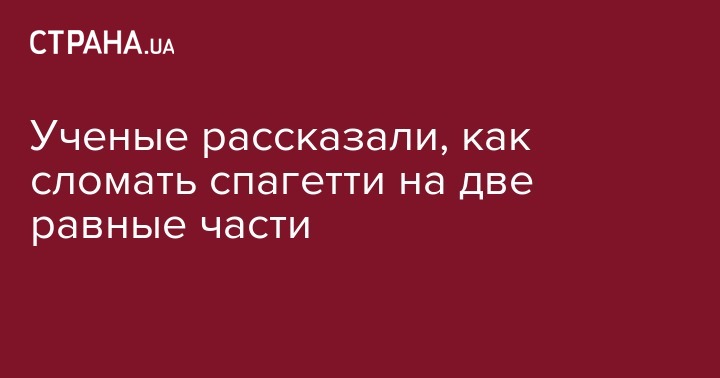 Проблема возникла из-за распространения по сухой макаронине каскадной волны разгибания, именно поэтому чаще всего она ломается на три или больше кусков. Чтобы поделить спагетти пополам, необходимо предварительно скрутить ее вокруг своей оси или сближать два конца макаронины с достаточно небольшой скоростью.