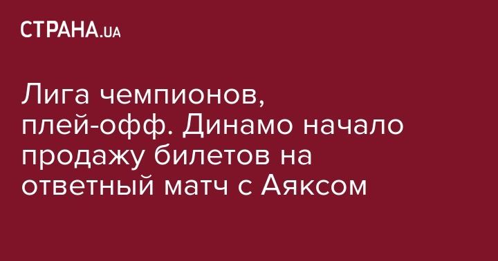 В субботу, 18 августа, началась продажа билетов на ответный матч раунда плей-офф Лиги чемпионов Динамо - Аякс. Игра пройдет на НСК "Олимпийский" во вторник, 28 августа. Начало матча в 22:00.