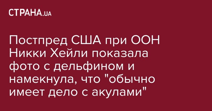 Постпред США при ООН Никки Хейли показала фото с дельфином и намекнула, что "обычно имеет дело с акулами"