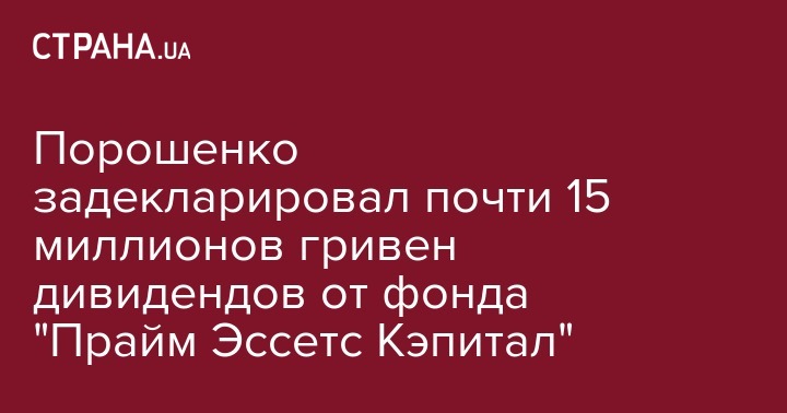 Президент Украины Петр Порошенко задекларировал 14,7 млн гривен дивидендов. Доход он получил от публичного акционерного общества "Закрытый недиверсифицированный корпоративный инвестиционный фонд "Прайм Эссетс Кэпитал".