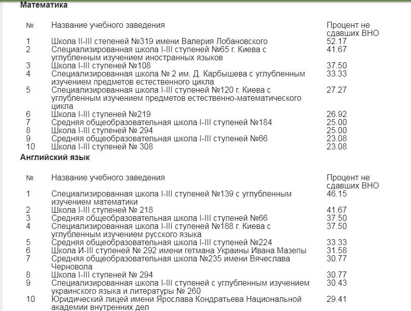 Стал известен список школ Киева, выпускники которых набрали меньше всего баллов по результатам ВНО-2018. Как сообщает Информатор, антирейтинг составлен на основании данных Украинского центра оценивания качества образования.