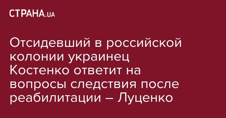 Вернувшийся в Украину из РФ после отбывания наказания в исправительной колонии в Кировской области (РФ) гражданин Украины Александр Костенко будет отвечать на вопросы следствия после периода реабилитации, отмечает генеральный прокурор Юрий Луценко.