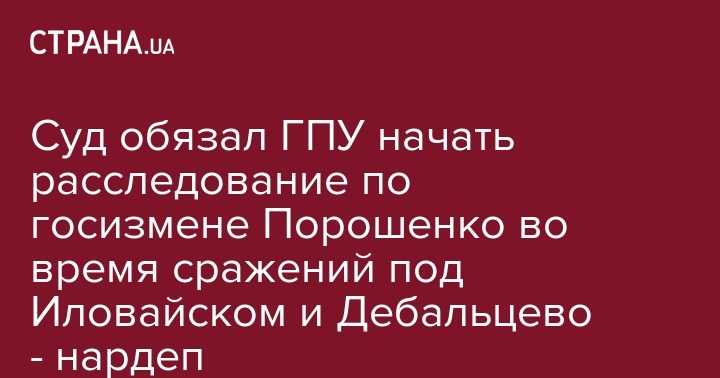 Печерский райсуд Киева обязал ГПУ расследовать нарушения среди руководства страны, которые привели к гибели тысяч людей в Иловайском и Дебальцевских котлах. Об этом написал у себя в Facebook нардеп, заглавы Комитета Рады по вопросам законодательного обеспечения правоохранительной деятельности Виталий Куприй.