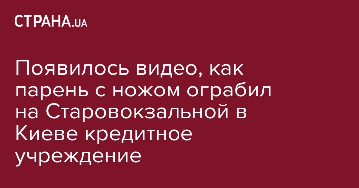 Появилось видео, как парень с ножом ограбил на Старовокзальной в Киеве кредитное учреждение