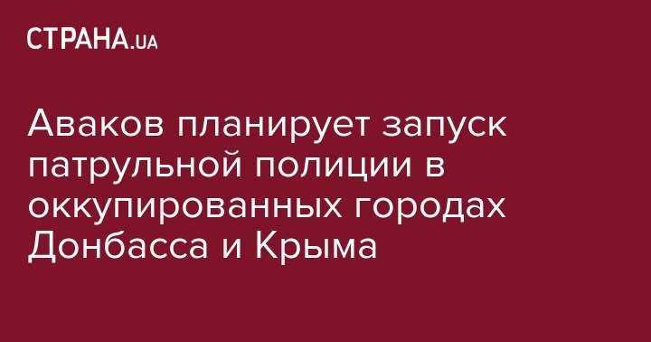 Министр внутренних дел Арсен Аваков заявил о планах запустить патрульную полицию в шести городах оккупированного Донбасса и Крыма. Об этом Аваков написал у себя в Facebook.