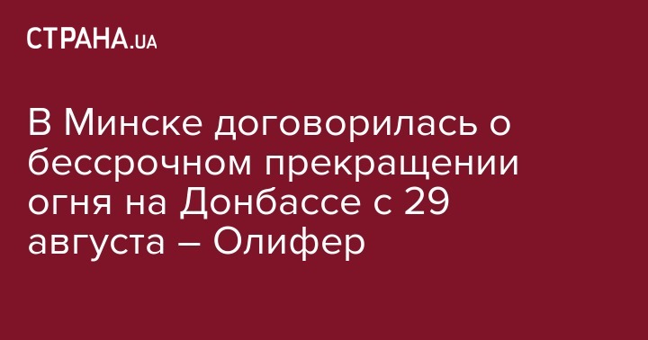 В Минске договорилась о бессрочном прекращении огня на Донбассе с 29 августа – Олифер