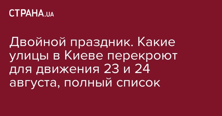 Кроме того, с 24:00 23 августа до 03:00 25 августа запретят движение транспорта на ул. Ивана Мазепы (от ул. Московской до ул. Михаила Емельяновича-Павленко) во время подготовки и проведения праздничного мероприятия по случаю 27-й годовщины независимости Украины и фестиваля уличной еды.