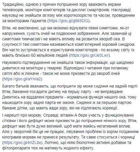 Традиционно, одной из причин ухудшения зрения считают экраны телевизоров, мониторы компьютеров и дисплеи смартфонов. Супрун заявила, что ученые не нашли связи между близорукостью и временем, проведенным за мониторами гаджетов.