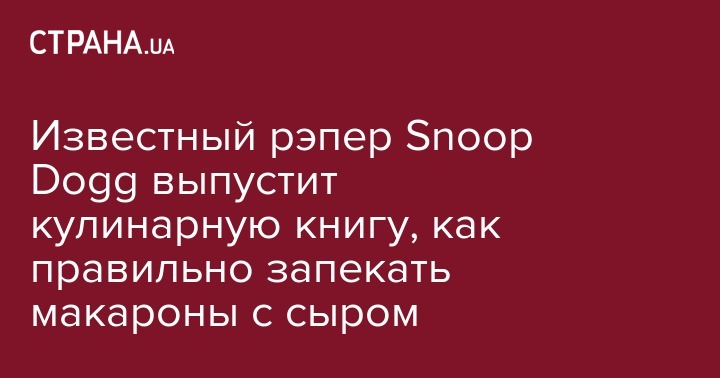 Известный рэпер Snoop Dogg выпустит кулинарную книгу, как правильно запекать макароны с сыром