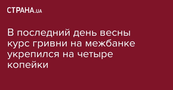 В последний день весны курс гривни на межбанке укрепился на четыре копейки