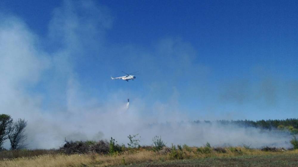 В 16:05 пожарный вертолет ГосЧС Ми-8 начал тушить пожар с воздуха. Уже совершено 7 сбросов воды.
