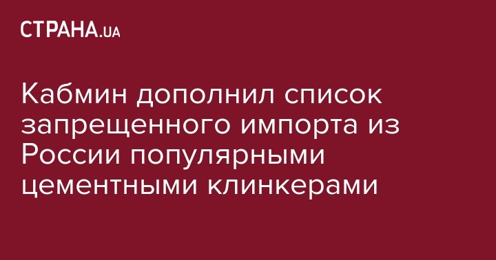 Цементные клинкеры из России попали в перечень товаров, которые запрещено ввозить на территорию Украины. Такое решение было принято на сегодняшнем заседании Кабинета министром, передает 112.ua.