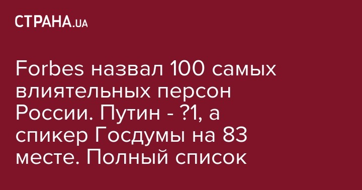 Российский версия авторитетного Forbes представила свой первый рейтинг Топ-100 самых влиятельных персон в России. Причем свой рейтинг журналисты назвали "Власть бизнеса".