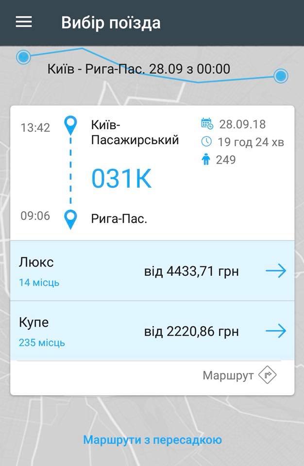 Цена билета в вагон купе из Киева в Ригу составляет 2219,11 гривны, вагон СВ - 4428,17 гривни. Из Киева в Вильнюс билет в купейный вагон обойдется в 1640,62 гривны, вагон СВ - 3271,78 гривны. В Минск из Киева в купейном вагоне можно доехать за 1853,98 гривен, в вагоне СВ - 3574,69 гривны.