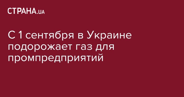 В Украине с 1 сентября вырастут цены на газ для промышленных потребителей. Рост цен на газ для промпредприятий составит около 20% (примерно на 2 000 гривен за 1 000 кубов - Прим.Ред.).