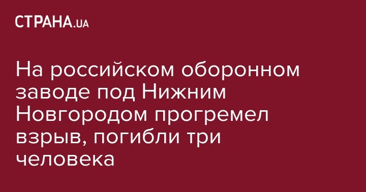 Три человека погибли в результате взрыва в России на оборонном заводе имени Свердлова в городе Дзержинске Нижегородской области. Еще четверо получили ранения. Один сотрудник предприятия пропал без вести.