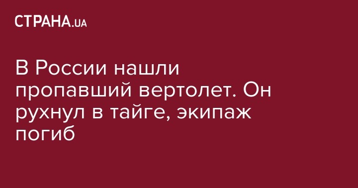 В России нашли пропавший вертолет. Он рухнул в тайге, экипаж погиб