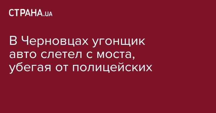 В Черновцах мужчина угнал автомобиль с автомойки и слетел на нем с моста во время полицейской погони. Сообщается, что автоугонщик, упав с 10-метровой высоты, не пострадал. Об этом сообщает ТСН.