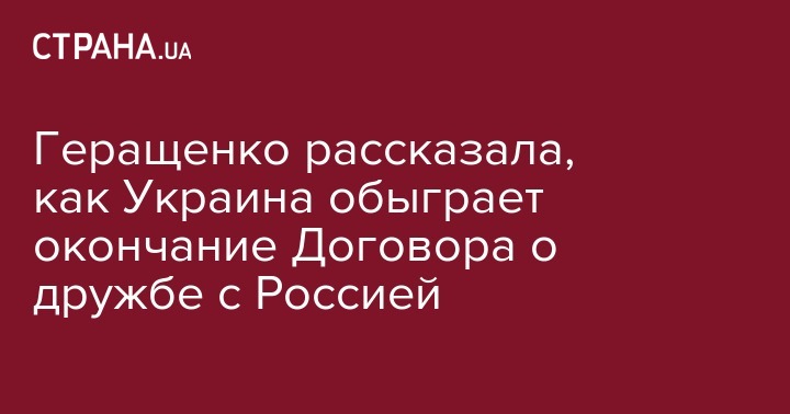 Украина не намерена разрывать или денонсировать договор о дружбе с Россией, что позволит использовать его нарушение со стороны России в международных судах. Вместе с тем Киев не намерен продлевать действие документа. Об этом сообщила первый вице-спикер Верховной Рады Ирина Геращенко на своей странице в Facebook.