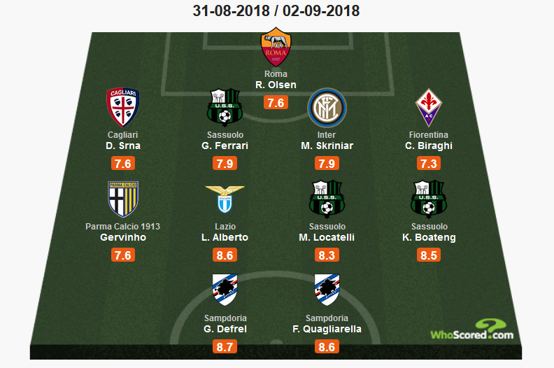 Третий тур серии А. Дарио Срна вошел в символическую сборную итальянского чемпионата