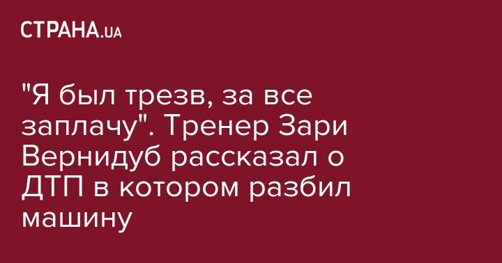 "Я был трезв, за все заплачу". Тренер Зари Вернидуб рассказал о ДТП в котором разбил машину