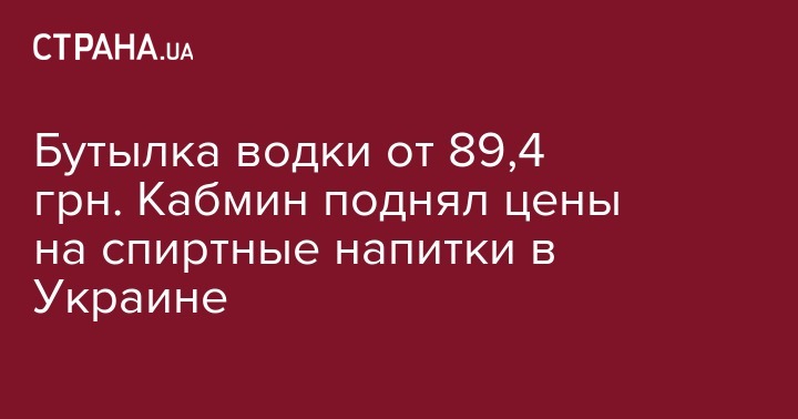 Согласно постановлению, принятому на заседании правительства в среду, минимальную розничную цену на пол-литровую бутылку водки предлагается повысить – до 89,4 грн. Минимальные оптово-отпускные цены на водку и ликеро-водочные изделия повышаются – до 321 грн/литр 100%-го спирта. Минимальные цены на вина натуральные повышены до 42 грн за бутылку 0,7 л в рознице, на крепленые вина и вермуты – до 49 грн, на шампанское за бутылку 0,7 л – до 89 грн.