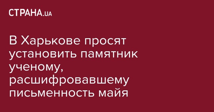 На сайте Харьковского горсовета зарегистрирована электронная петиция с предложением установить памятник ученому Юрию Кнорозову, который впервые в мире расшифровал письменность майя. Об этом сообщается на сайте петиций горсовета.