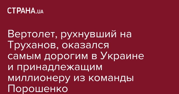Вертолет, рухнувший на Труханов, оказался самым дорогим в Украине и принадлежащим миллионеру из команды Порошенко