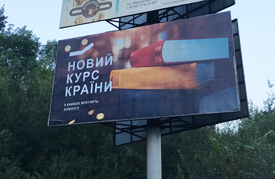 В разных частях города Львова разместили рекламные борды, пародирующие предвыборные маркетинговые кампании украинских политических сил. Их фотографии опубликовало Facebook-сообщество "Баба і кіт".