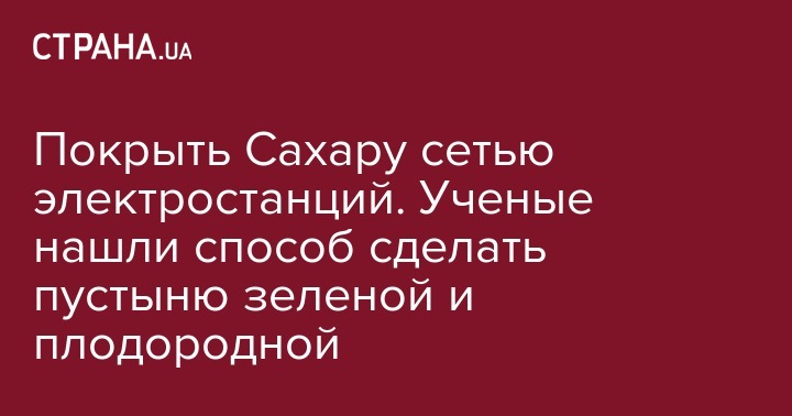 С помощью моделирования изменений климата они определили, что в случае, если всю площадь Сахары (более девяти миллионов километров) укрыть сетью солнечных и ветряных электростанций, то она снова станет зеленой.