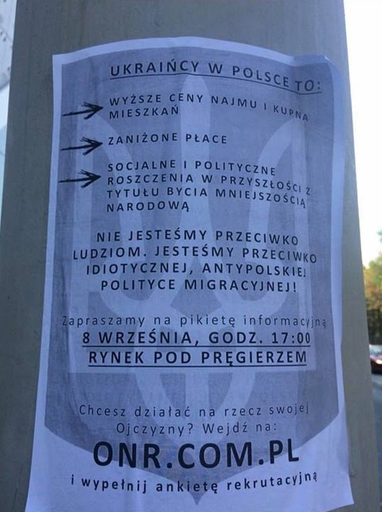В объявлении сказано, что из-за украинцев в Польше поднимают аренду и покупку жилья. Также украинцы "высказывают свои социальные и политические претензии в качестве национальных меньшинств", утверждается в объявлении.