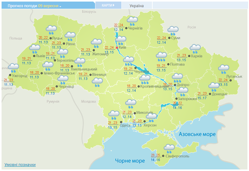 Также синоптики Укргидрометцентра обещают Украине дожди и похолодание на выходных.
