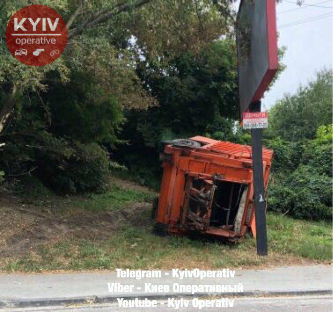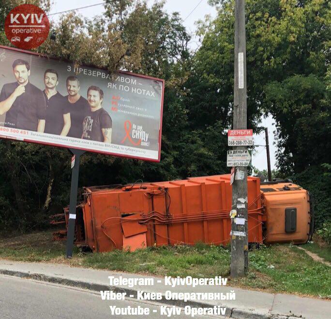 Киевляне обратили внимание на перевернутый мусоровоз по проспекту Науки. Фото
