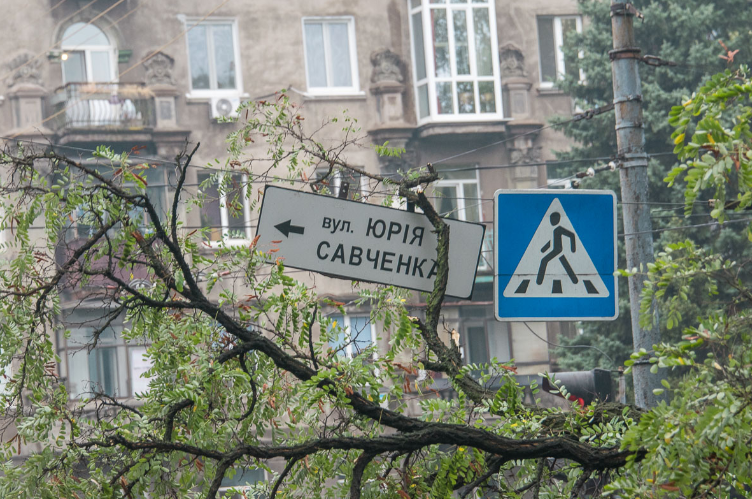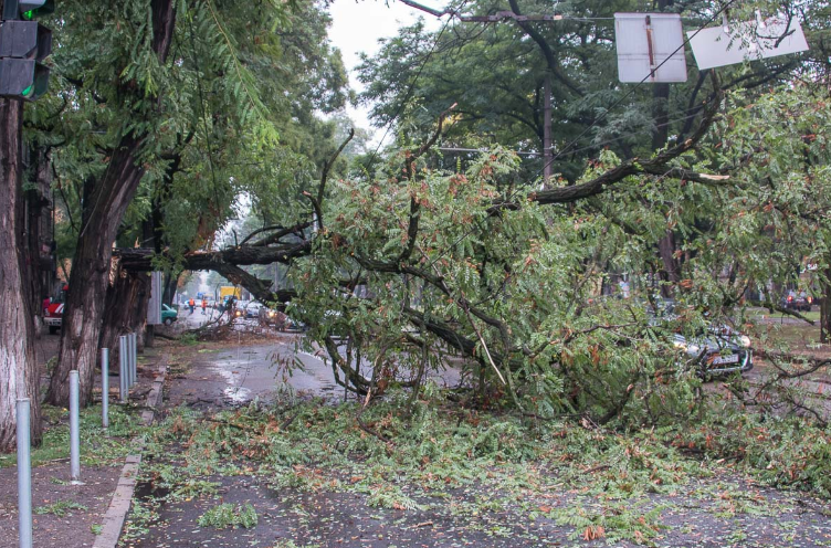Буря в Днепре завалила деревья на дорогу, блокируя движение транспорта