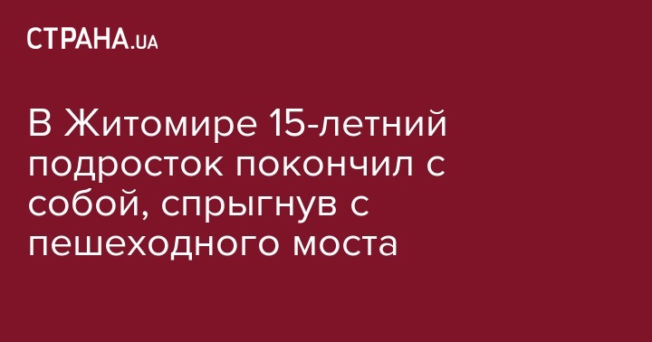 В Житомире 15-летний подросток покончил с собой, спрыгнув с пешеходного моста