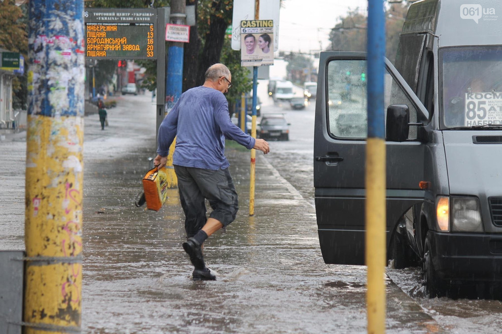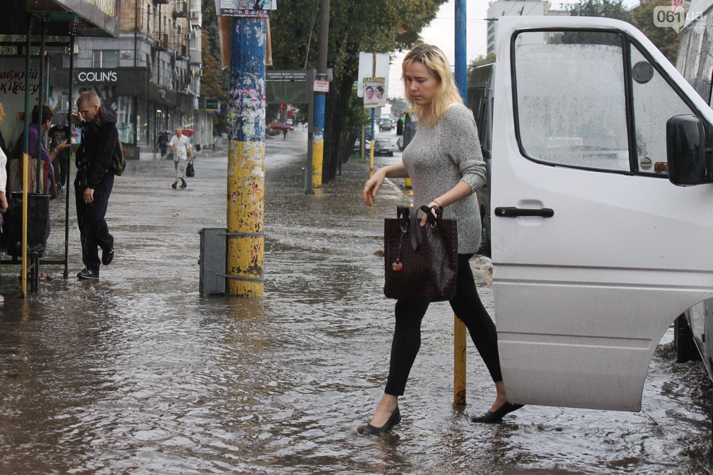 Мощный ливень, который прошел в Запорожье в понедельник, утром 10 сентября, превратил в реки улицы областного центра, сообщает сайт города.