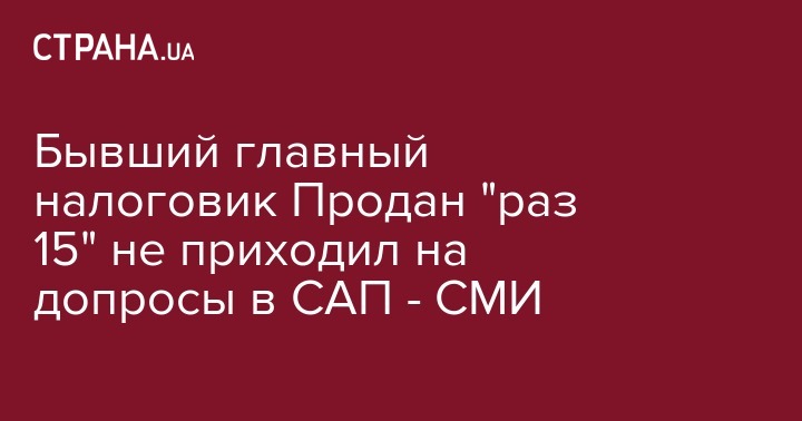 Последний раз Продан не пришел 7 сентября. На уточнение, сколько раз фискала приглашали к САП, собеседник отметил: "Официально – один-два. Неофициально – еще к тому и на прошлой неделе, в общем, раз, наверное, пятнадцать".