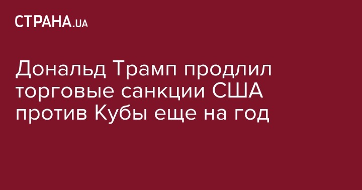 Президент США Дональд Трамп продлил до 14 сентября 2019 года торговые ограничения в отношении Кубы. Об этом говорится в заявлении Трампа, распространенном в понедельник, пишет "Интерфакс".