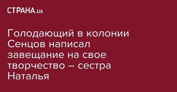 Украинский политзаключенный Олег Сенцов, который голодает в российской колонии 120 дней, написал завещание на свое творчество в случае смерти, сообщила его сестра Наталья Каплан.