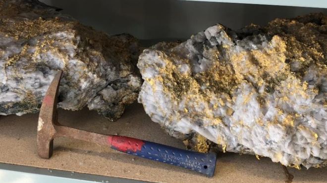 В самом большом камне, который весит 95 килограммов, содержится около 2 400 унций золота (это около 68 кг), сообщили в добывающей компании RNC Minerals. Основной состав камней - кварцевая порода.
