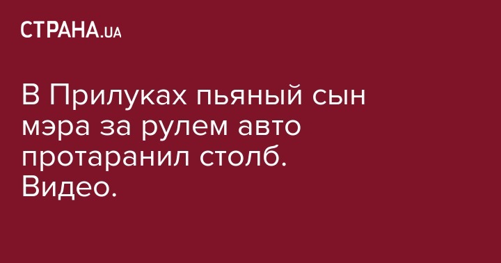 В Прилуках Черниговской области сын местной градоначальницы Ольги Попенко, Ярослав, находясь за рулем, не справился с управлением и его авто протаранило электроопору. При этом сам водитель не пострадал. Однако, как утверждают очевидцы, после ДТП сын мэра вел себя довольно агрессивно, бросался на активиста, который снимал последствия ДТП на видео.