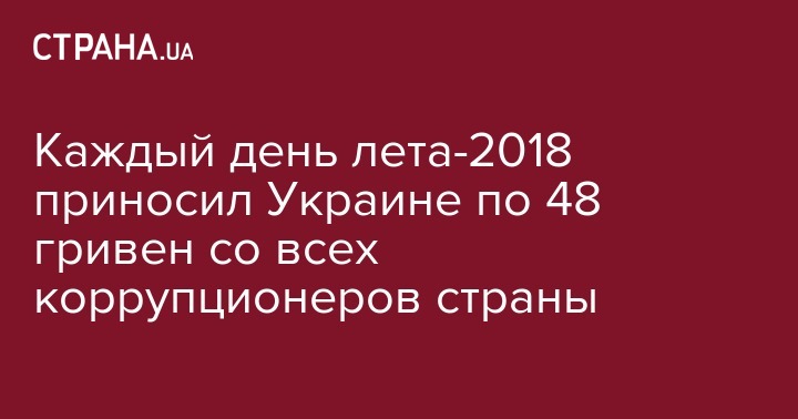 Каждый день лета-2018 приносил Украине по 48 гривен со всех коррупционеров страны
