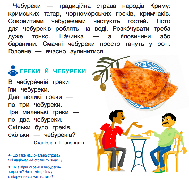 На сайте Министерства образования появились электронные версии школьных учебников, в которых есть стихи про греков и чебуреки, папу, который лепит вареники на кухне и мама с татуировкой. Об этом сообщает hmarochos.kiev.ua.