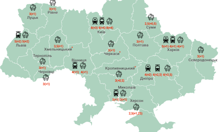 В Славянске и Сумах стоимость проезда в троллейбусах повысилась на 50 копеек - до 3 грн и 2,5 грн соответственно. Во Львове трамвай и троллейбус подорожал на  2 грн.