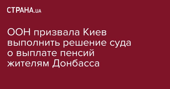 Управление Верховного комиссара ООН по делам беженцев (УВКБ) ожидает, что украинские власти быстро выполнят решение Верховного суда Украины (ВСУ), признавшего 4 сентября незаконным прекращение выплаты пенсий жителям неподконтрольных территорий Донбасса. Об этом говорится в пресс-релизе этого ведомства, распространенном во вторник в Женеве.