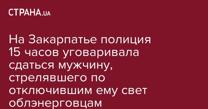 "На Закарпатье полицейские задержали злоумышленника, стрелявшего из ружья по людям. В течение 15 часов хустские полицейские вели переговоры с мужчиной, который стрелял из незарегистрированного ружья в сотрудников облэнерго и закрылся в собственном доме", - говорится в сообщении.